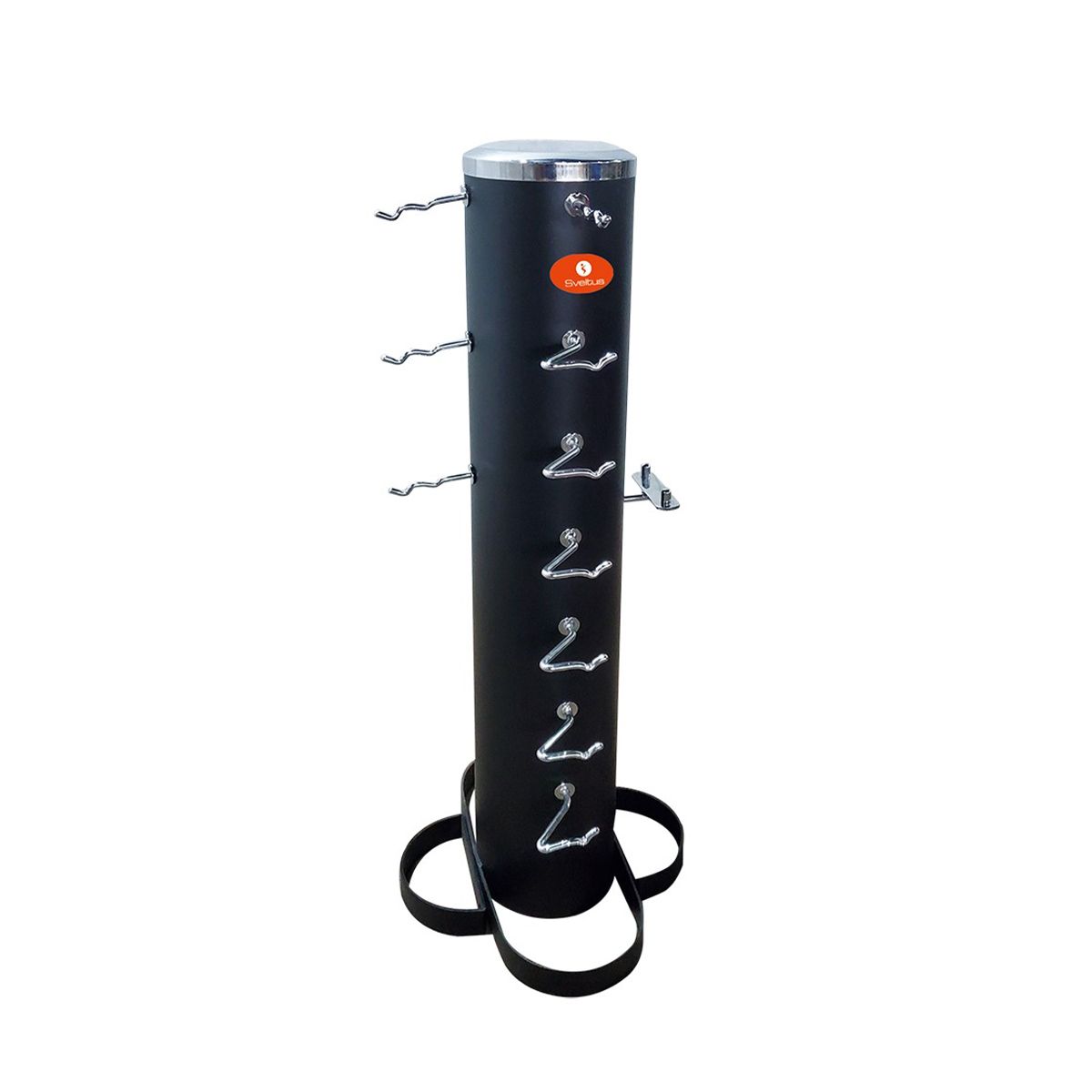 A SVELTUS ACCESSORIES STORAGE RACK padlóra állítható állvány kiváló kelléke a fitnesztermeknek.