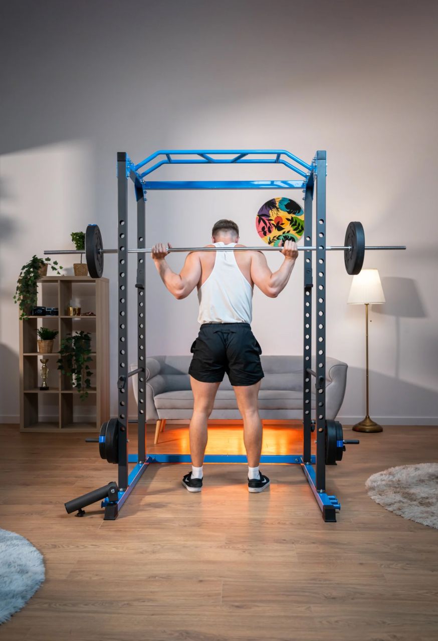 - két oldalon vízszintes biztonsági korlát guggoláshoz és fekvenyomáshoz