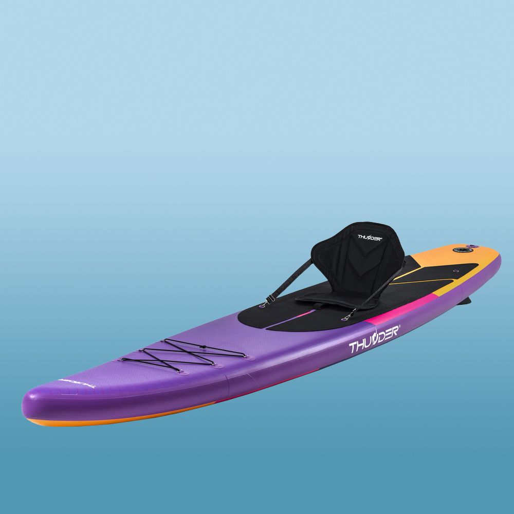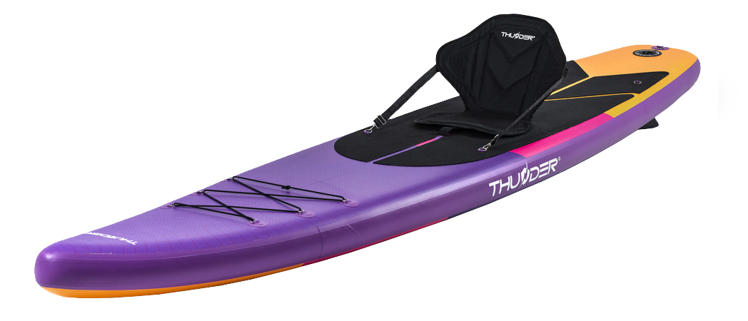 A THUNDER Outdoor SUP (stand-up-paddleboard) egy univerzális használatra tervezett felfújható vízisport eszköz, mely innovatív technológiák alkalmazásának köszönhetően nemcsak stabil és biztonságos, de remekül irányítható is. A tartozék kajaküléssel akár kajakozásra is alkalmas.