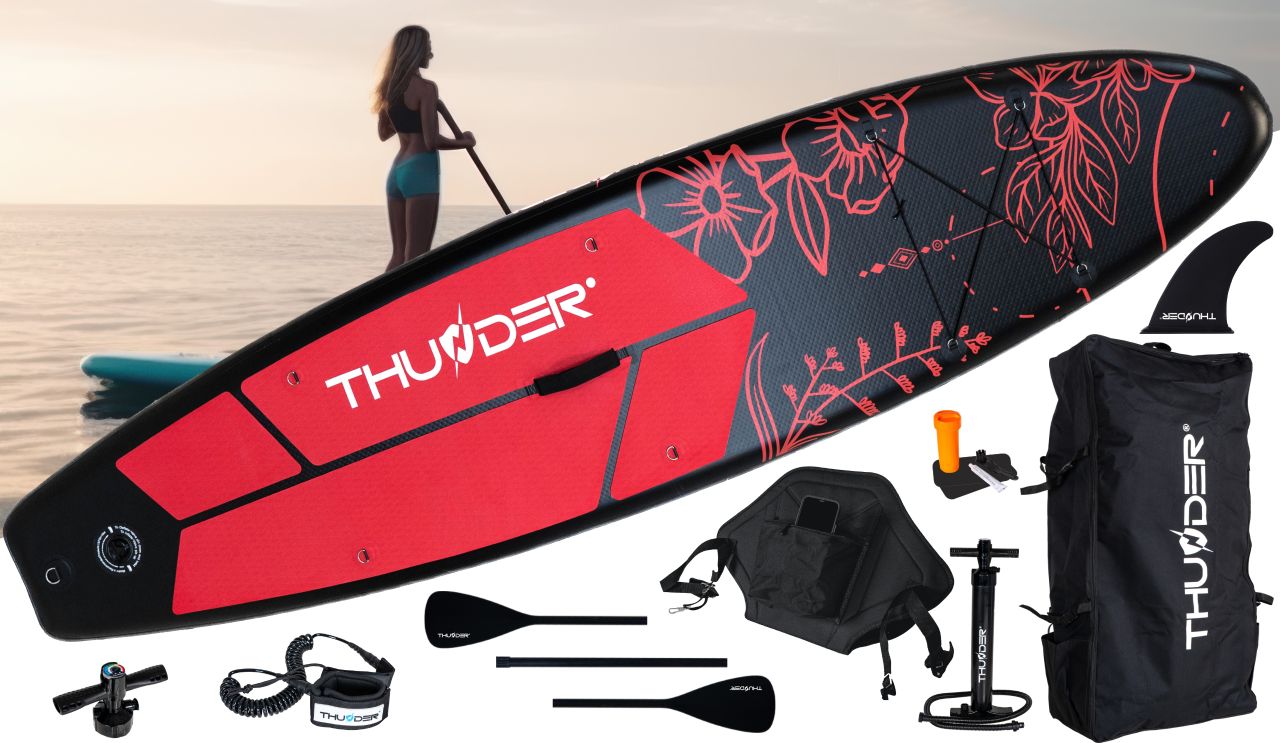 A THUNDER Outdoor SUP (stand-up-paddleboard) egy univerzális használatra tervezett felfújható vízisport eszköz, mely innovatív technológiák alkalmazásának köszönhetően nemcsak stabil és biztonságos, de remekül irányítható is. A tartozék kajaküléssel akár kajakozásra is alkalmas.