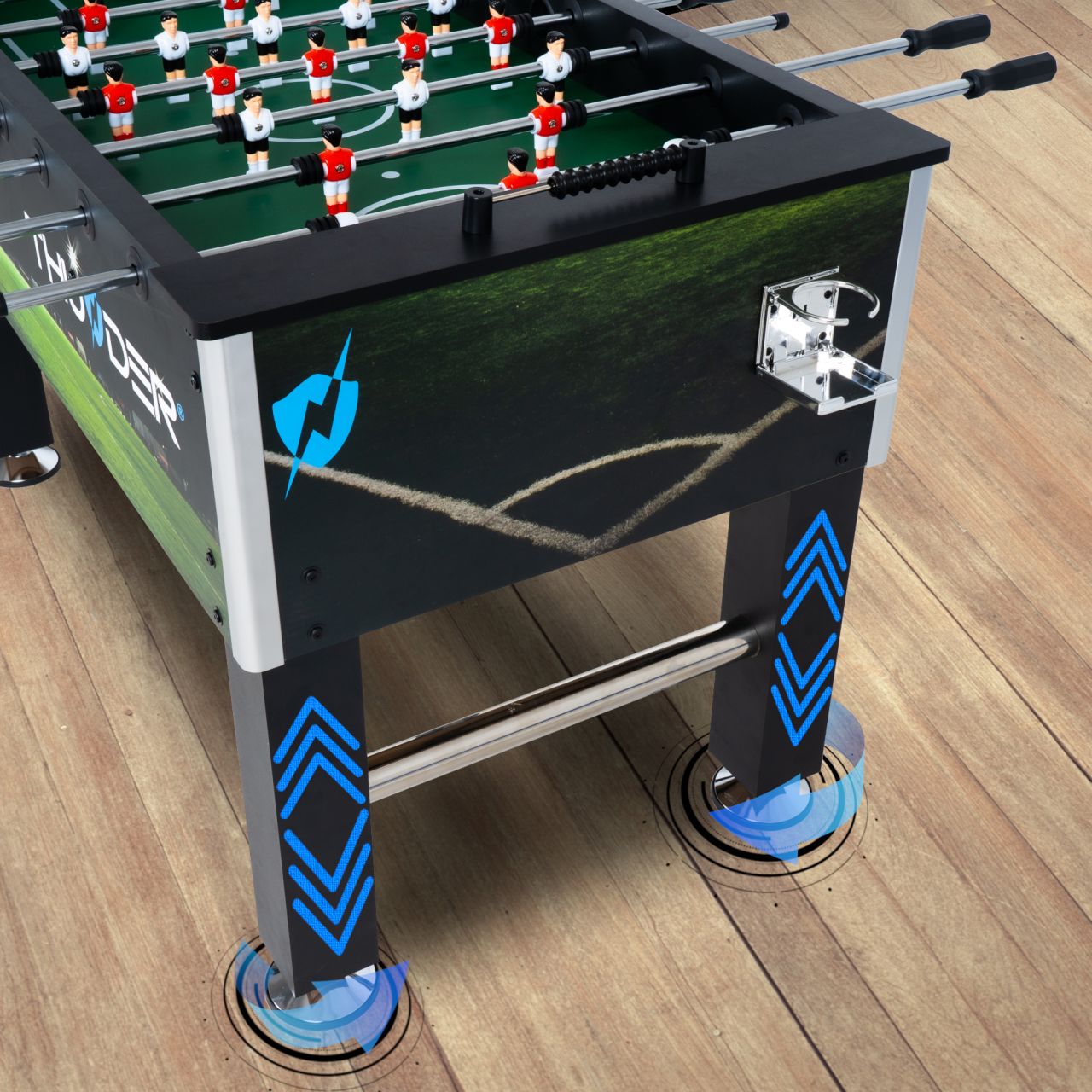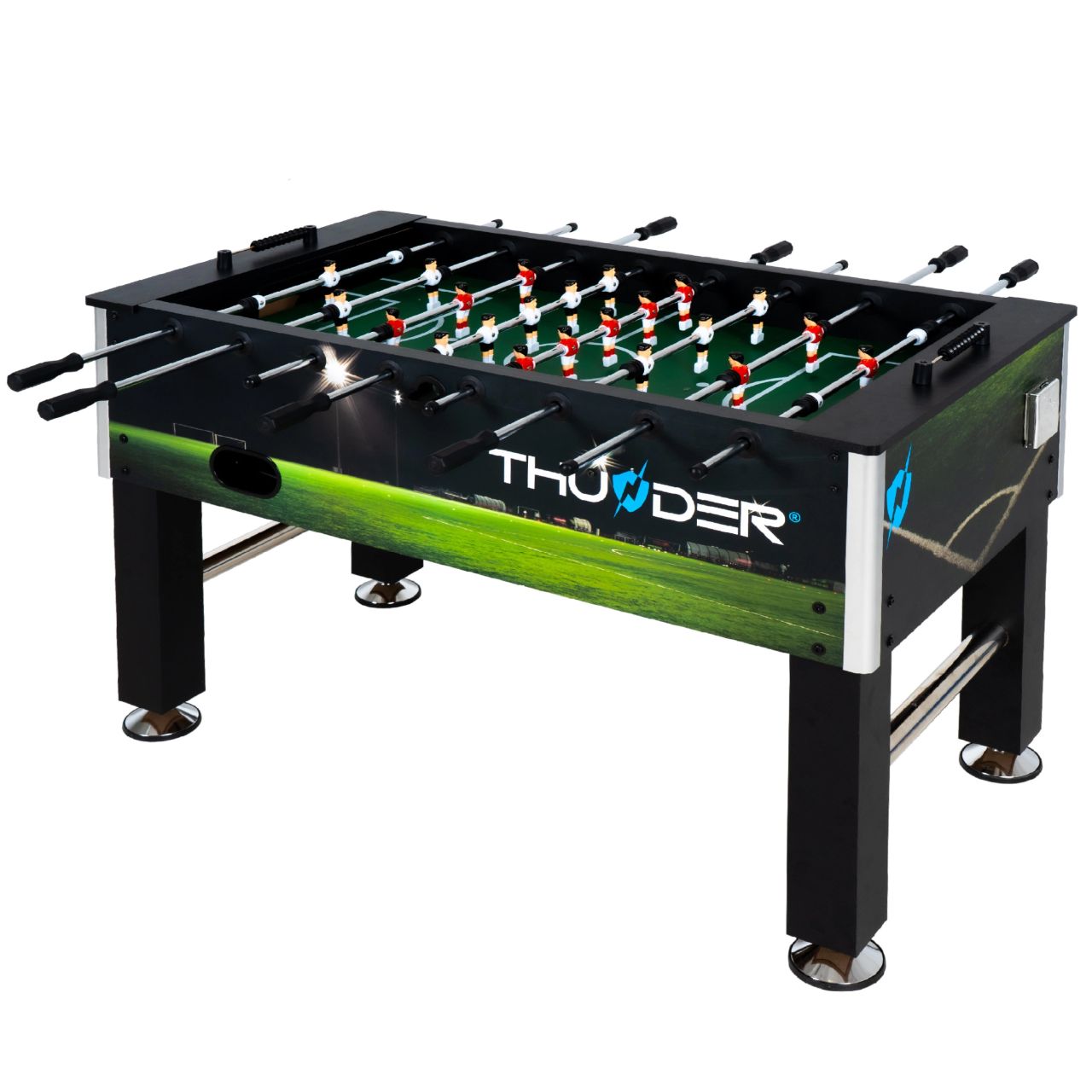 A THUNDER®️ SPORT asztali foci masszív felépítésének köszönhetően tökéletes lesz a dinamikus játékokhoz. A megerősítő kereszttartók emellett stabilizálják a teljes szerkezetet.