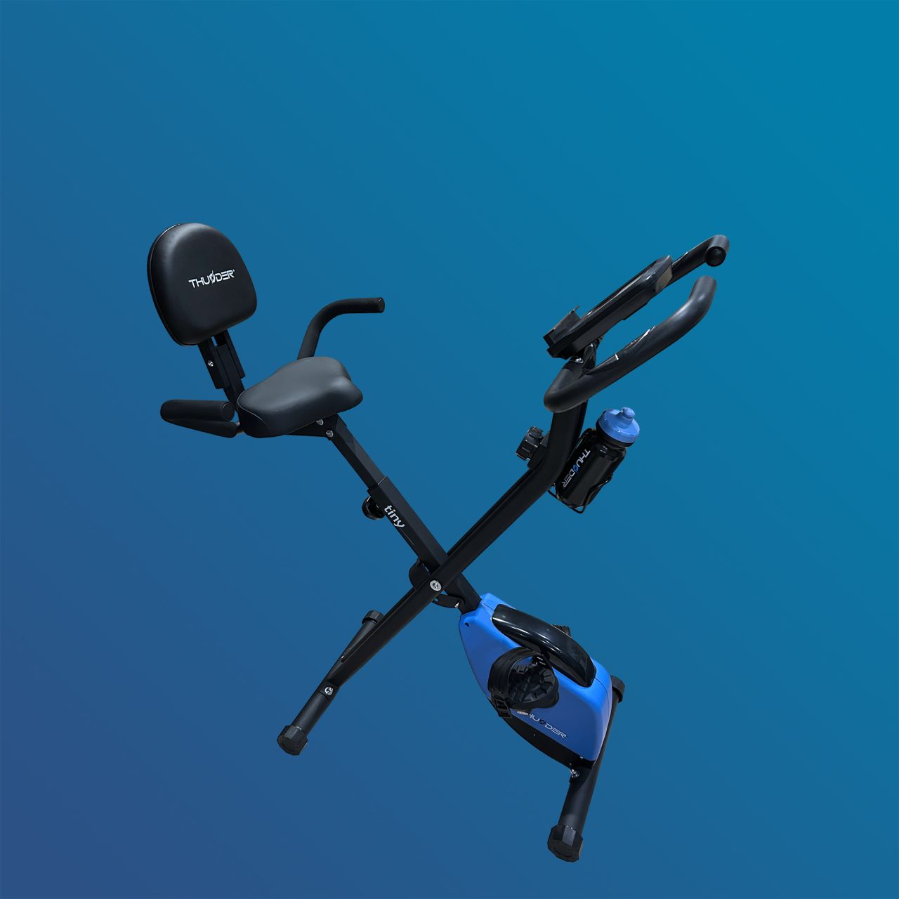 A TINY X-BIKE modell egy kompakt, összecsukható szobabicikli, maximum 110 kg-os sportolók számára. Teljes értékű edzés végezhető rajta, mégis kis helyen elfér. Használata a kényelmes nyeregnek és az extra háttámlának köszönhetően mindenki számára komfortos.