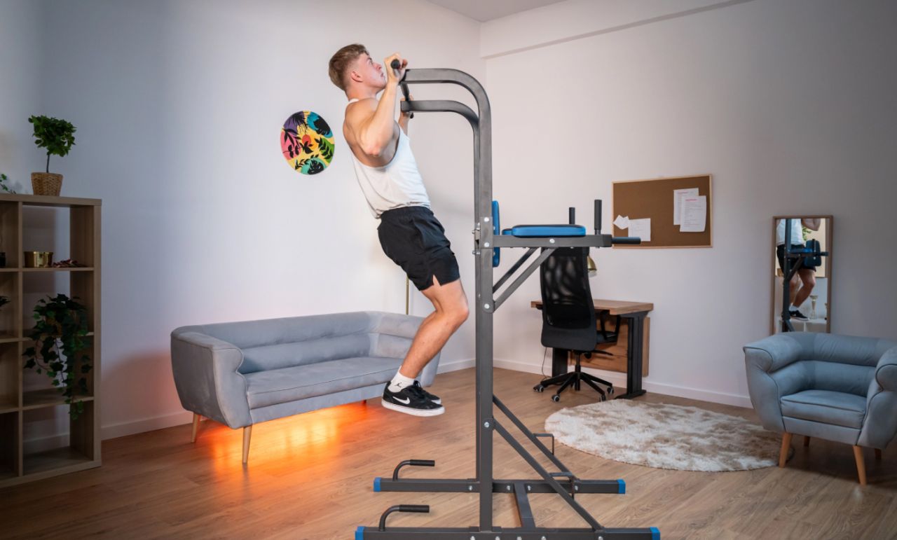 Sokoldalú edzőállomás a saját testsúlyos gyakorlatokhoz: húzódzkodás, tolódzkodás, fekvőtámasz, lábemelés, és még sok más lehetőség!