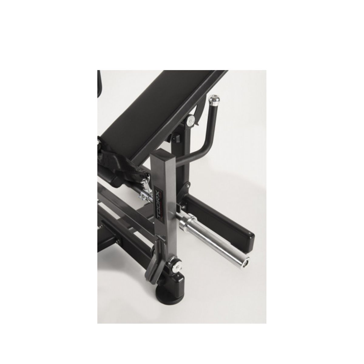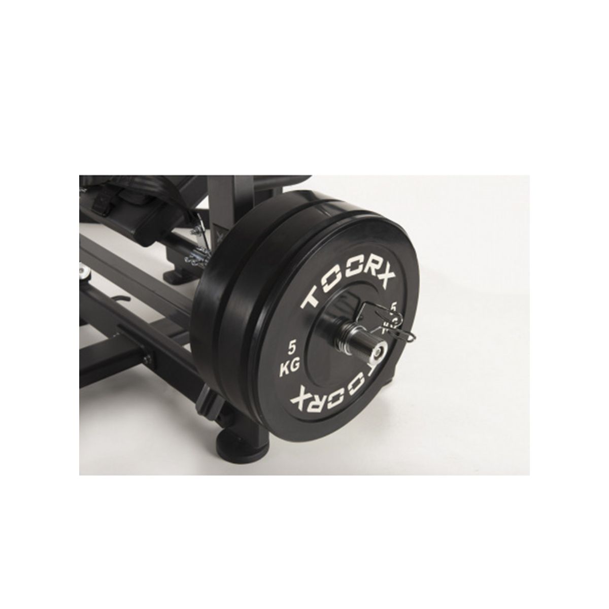 A Toorx FWX4400 csípő toló tárcsasúlyokkal használható, a farizom ergonomikus pozícióban való aktiválására tervezett gép.